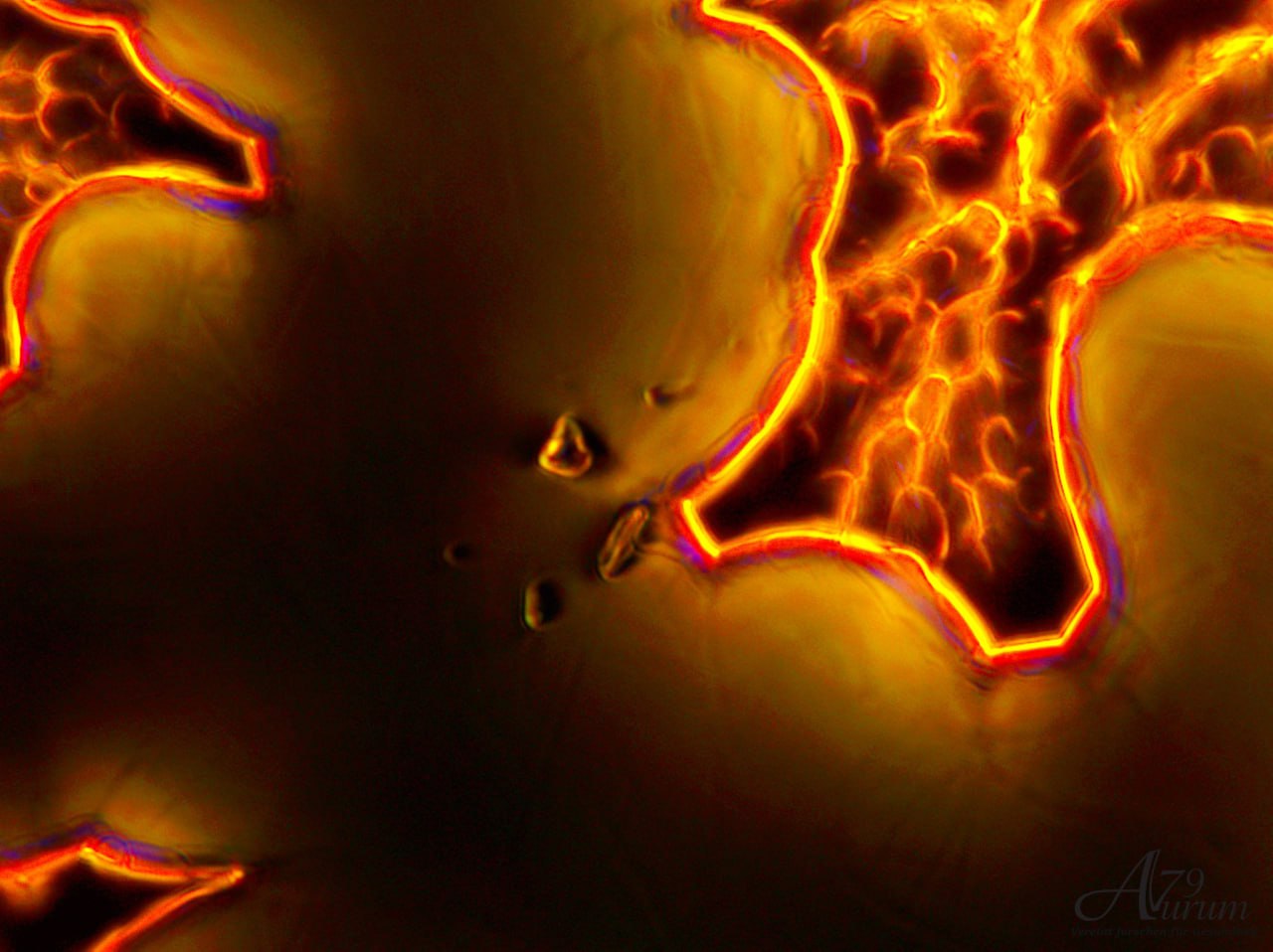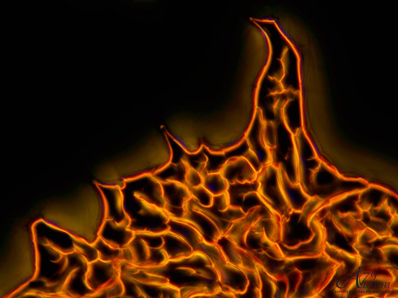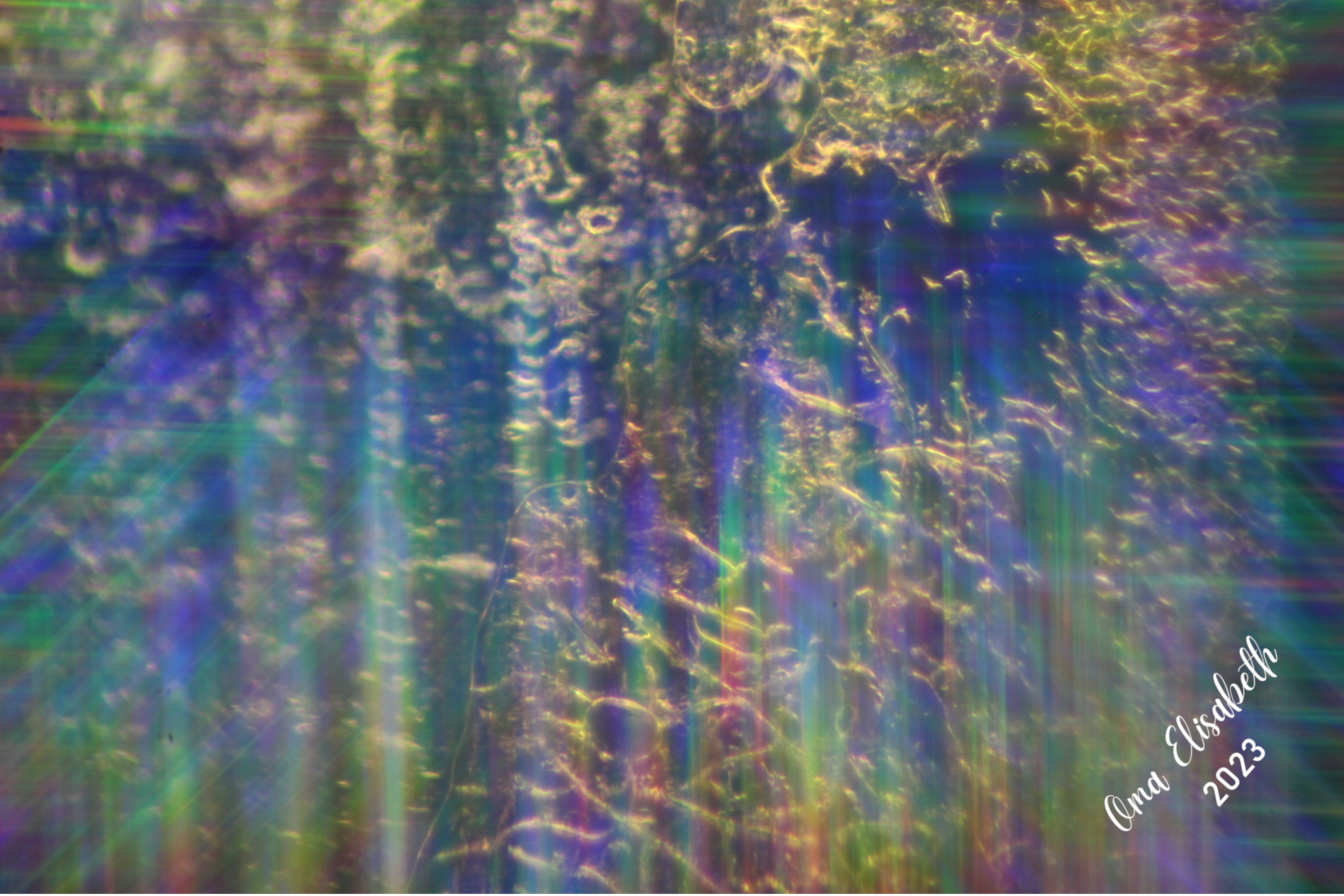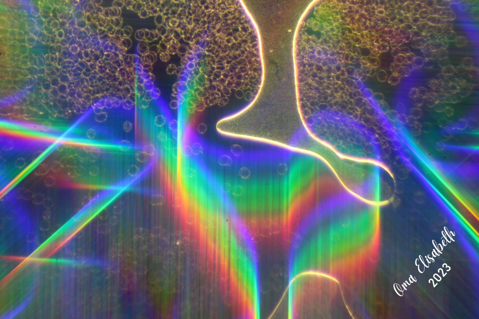 Die vielen kleinen runden Strukturen erinnern an Zellen unter dem Mikroskop – als würde man durch ein Prisma ins Innere des Lebens blicken.